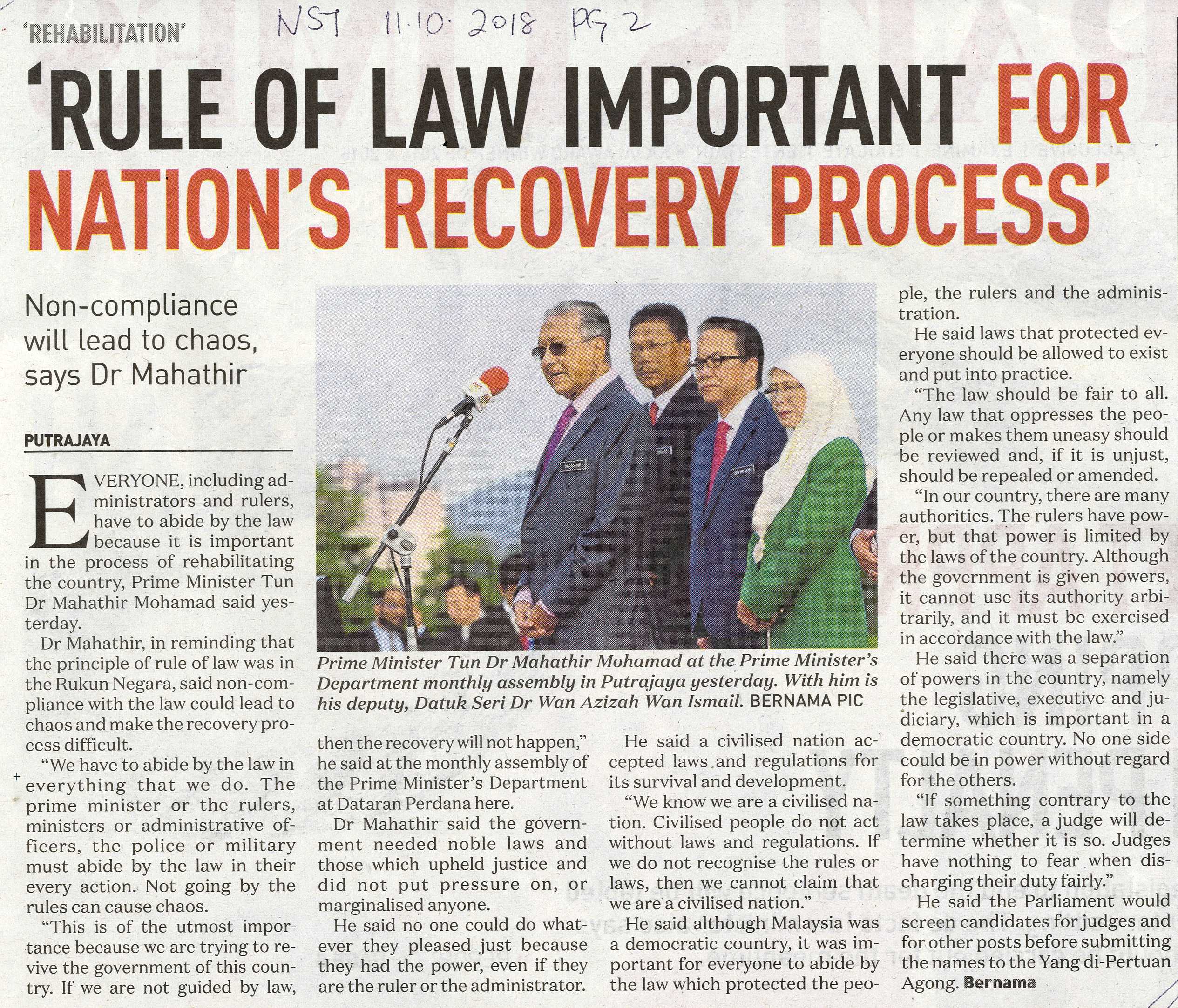 'RULE OF LAW IMPORTANT FOR NATION'S RECOVERY PROCESS'
